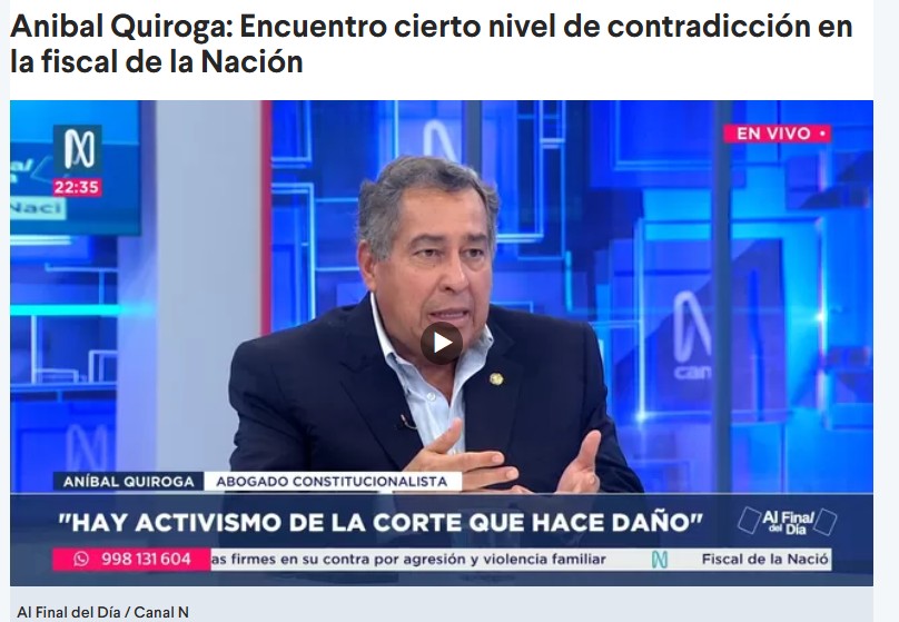 El constitucionalista Aníbal Quiroga analizó el reciente fallo del Tribunal Constitucional que limita la posibilidad de investigar a presidentes en funciones, destacando su importancia para preservar la institucionalidad. Defendió a Zoraida Ávalos, cuestionó las críticas sobre impunidad y afirmó que los procesos pueden continuar tras el mandato. También comentó el caso de Gino Ríos en la Junta Nacional de Justicia, señalando la necesidad de estándares éticos elevados en ese órgano