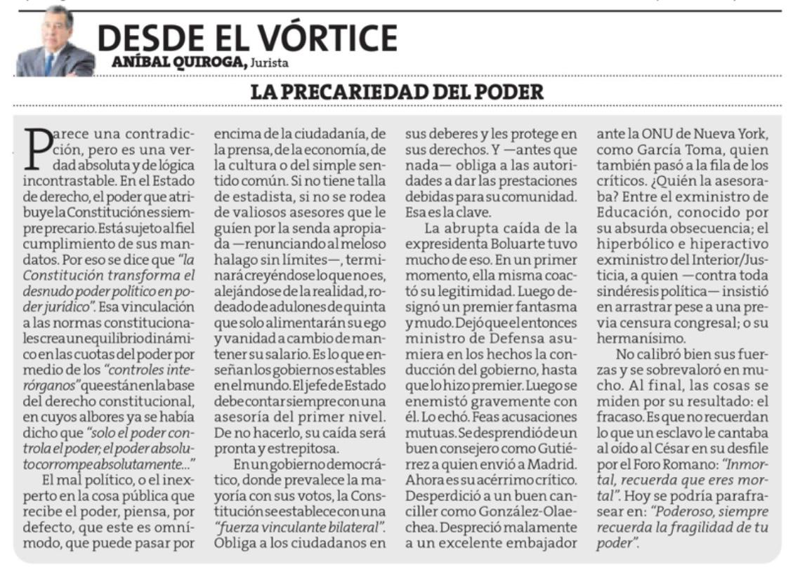 Lea también el artículo en: https://peru21.pe/opinion/la-precariedad-del-poder-anibal-quiroga-leon/