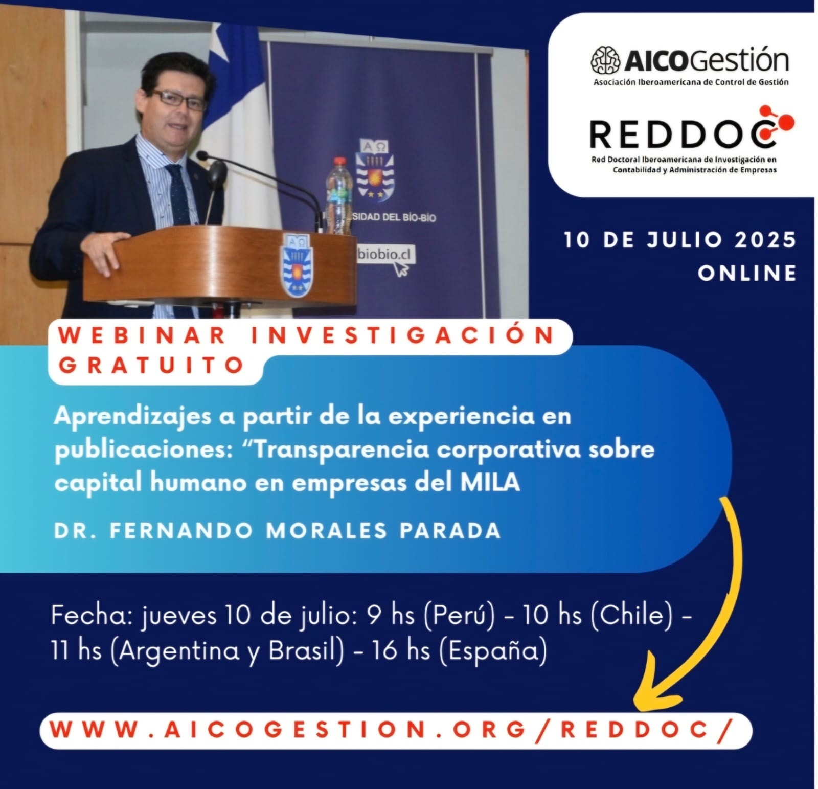 La Red Doctoral Iberoamericana de Investiación en Contabilidad y Administración de Empresas de AICOGESTION los invita al Webinar Aprendizajes a partir de la experiencia en publicaciones: “transparencia corporativa sobre capital humano en empresas del MILA”.