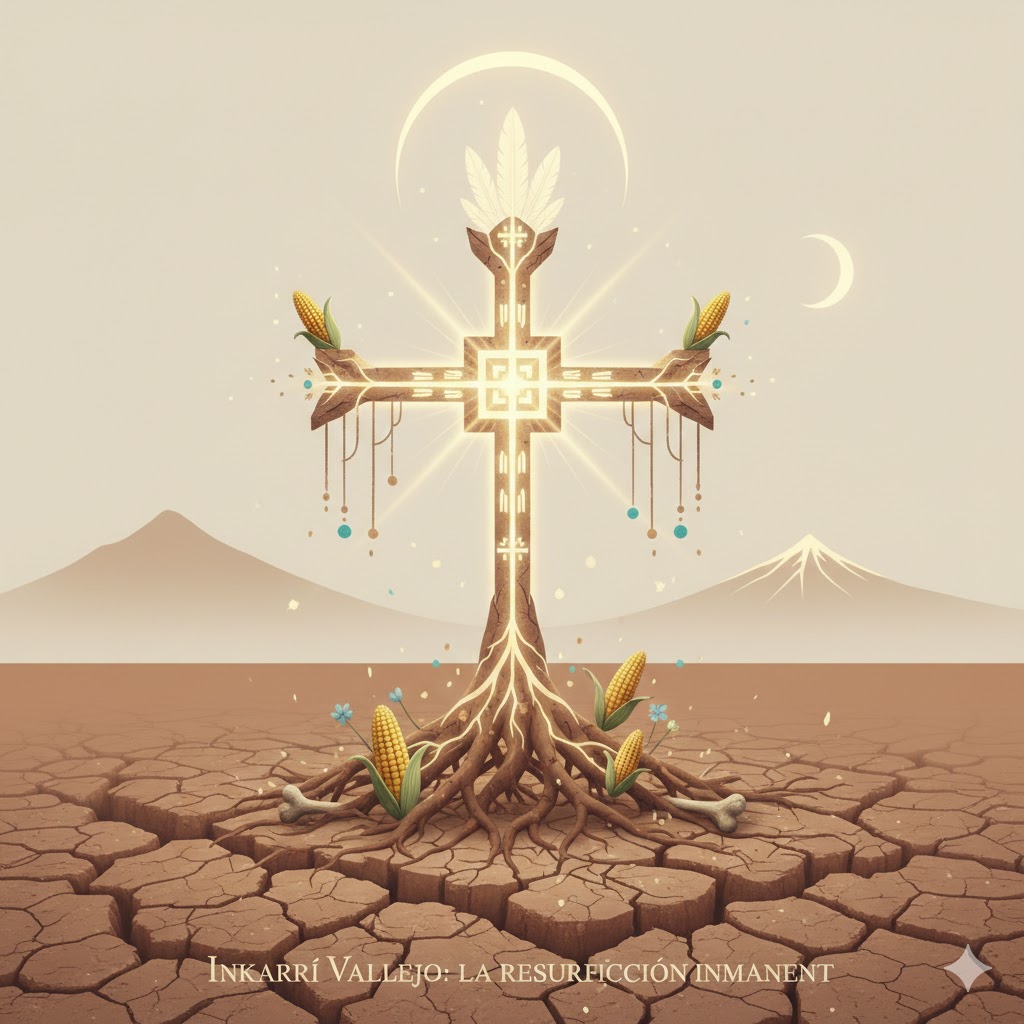 La clave que la crítica española soslaya es la naturaleza híbrida y mesiánica de Vallejo bajo la figura de Inkarrí. El término no es solo un arcaísmo folclórico; es una transmutación ontológica: Inka (orden solar) + Ri/INRI (el Rey crucificado). Vallejo es el articulador de este Mesías Inmanente. A diferencia del Cristo neoplatónico o trascendental de una María Zambrano, el Cristo de Vallejo es un cuerpo desmembrado que se recompone en la materia misma.