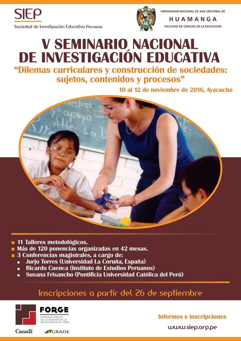 viernes, 30 de septiembre 2016 V Seminario Nacional Investigación Educativa-SIEP [Visto: 450 veces] Puntuación: 0 / Votos: 0