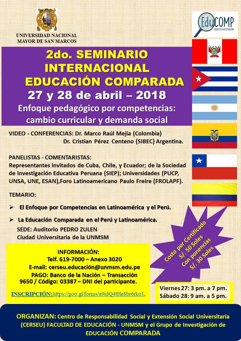 martes, 24 de abril 2018 Seminario Educación Comparada [Visto: 837 veces] Puntuación: 0 / Votos: 0 educación comparada