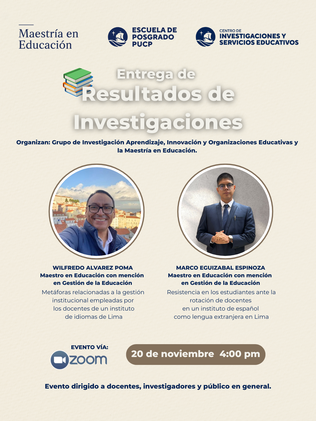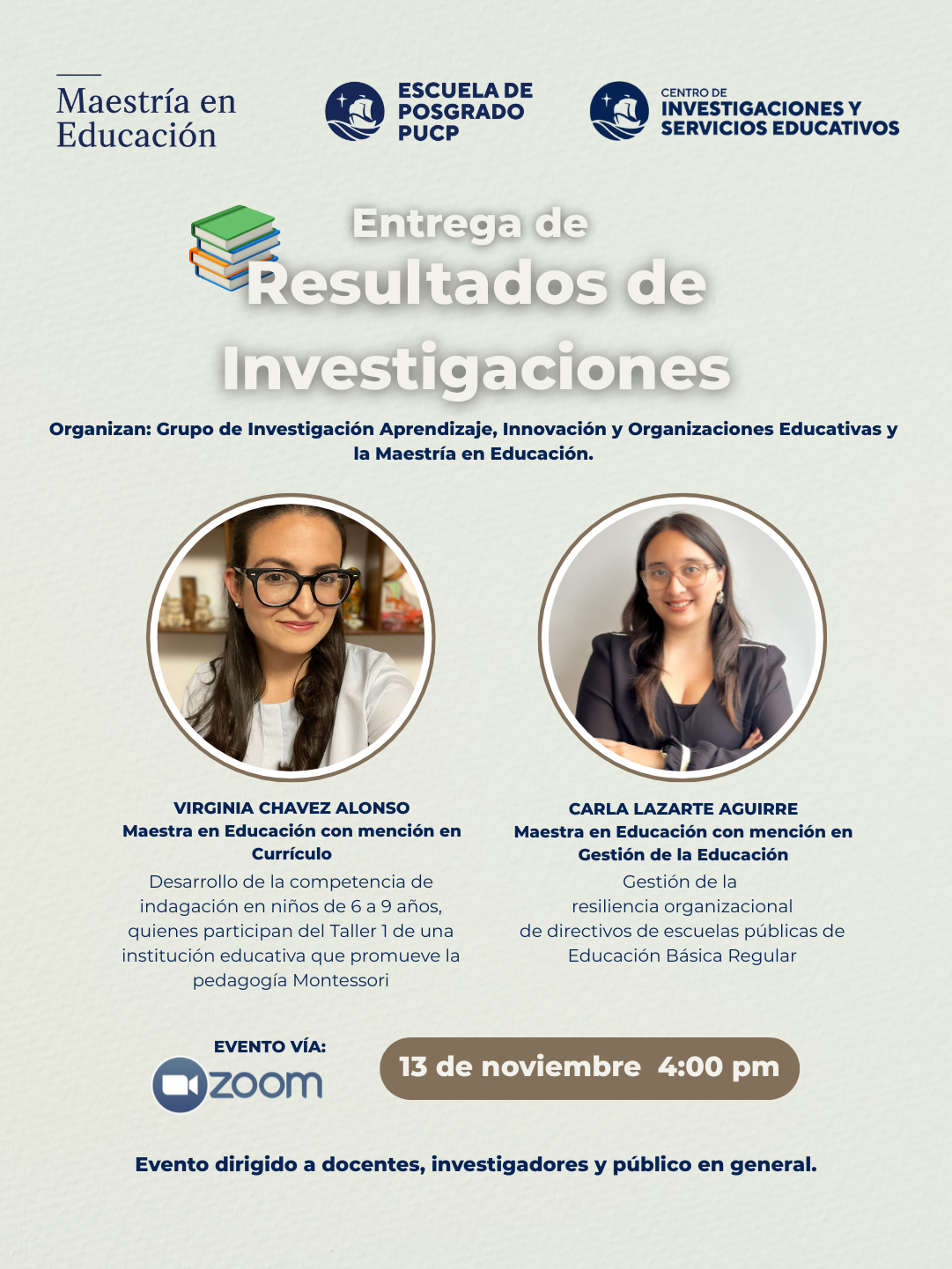 El Grupo de Investigación Aprendizaje, Innovación y Organizaciones Educativas junto a la Maestría en Educación los invita a participar en la Entrega de resultados de Investigaciones 2025.