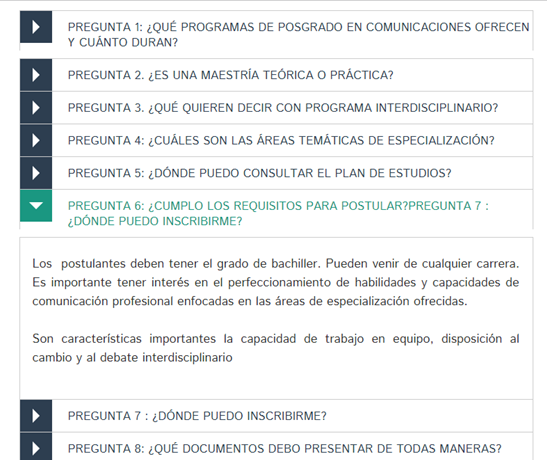¡El proceso de admisión de la Maestría en Comunicaciones PUCP acaba de empezar y va hasta mediados del mes de febrero! Pueden absolver todas sus dudas en la sección de “Preguntas Frecuentes”, haciendo clic aquí.