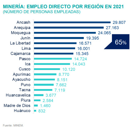 Figura 7. Empleabilidad por región gracias a la minería. Recuperado de BBVA Research (2023) https://www.bbvaresearch.com/wp-content/uploads/2023/02/Situacion-del-sector-minero-2022-1.pdf