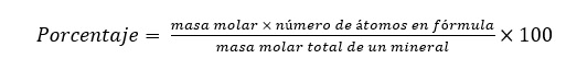La composición porcentual indica el contenido en masa de cada elemento o compuesto que forma un mineral. Se expresa como un porcentaje sobre la masa total. Para calcularlo, se utiliza la fórmula: